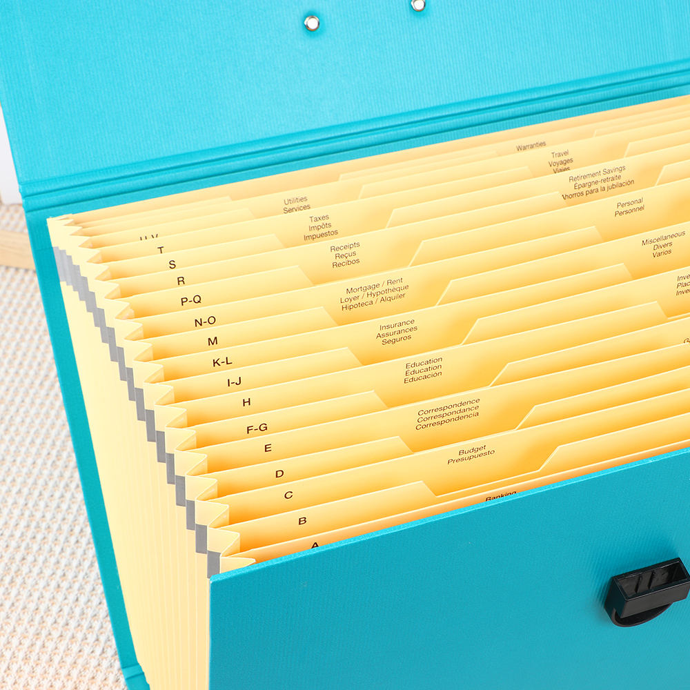 أنت هنا: بيت » منتجات » مجلد الملف » الجملة 19-pocket A4 توسيع نطاق ملف الأوراق منظم مستندات منظم مقبض مقبض المجلد على شكل مربع الاستخدام